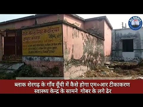 ब्लाक शेरगढ़ के गाँव वूँची में कैसे होगा एम०आर टीकाकरण स्वास्थ्य केन्द्र के सामने गोबर के लगे ढेर